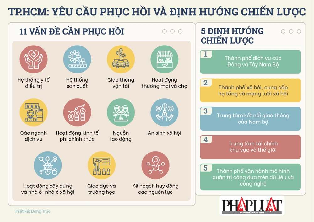 Sẽ có 11 vấn đề cần tính toán để phục hồi khẩn cấp, bao gồm: Hệ thống y tế điều trị phù hợp với giai đoạn thích ứng an toàn, tổ chức lại hệ thống sản xuất, tổ chức hoạt động thương mại và chợ, vận hành các ngành dịch vụ, hoạt động kinh tế phi chính thức, nguồn lao động, tổ chức an sinh xã hội, hoạt động xây dựng và nhà ở - nhà ở xã hội, hoạt động giáo dục và trường học, giao thông vận tải, kế hoạch huy động các nguồn lực cho TP.