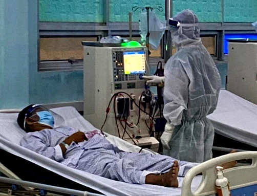 Bệnh nhân COVID-19 được chạy thận tại Bệnh viện Điều trị COVID-19 Củ Chi. Ảnh: SỞ Y TẾ TP.HCM