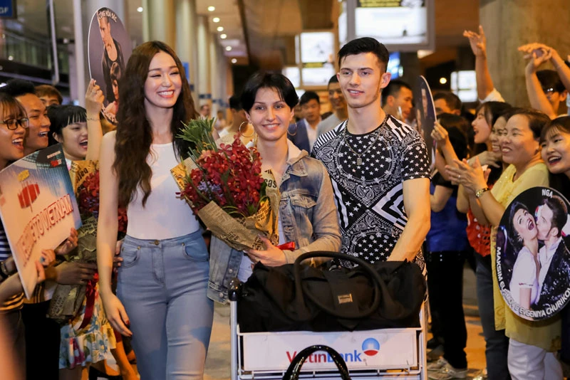 Khánh My (giữa) chia sẻ: “My cũng có biết qua tên tuổi của các vận động viên này trên thế giới và những thành tích mà họ gặt hái được. My thực sự rất ngưỡng mộ và rất hạnh phúc khi được chào đón họ tại đất nước Việt Nam. My và các bạn thí sinh rất tự hào khi có được cơ hội kết hợp những điệu nhảy cùng họ trên sân khấu Vip Dance tuần này”.