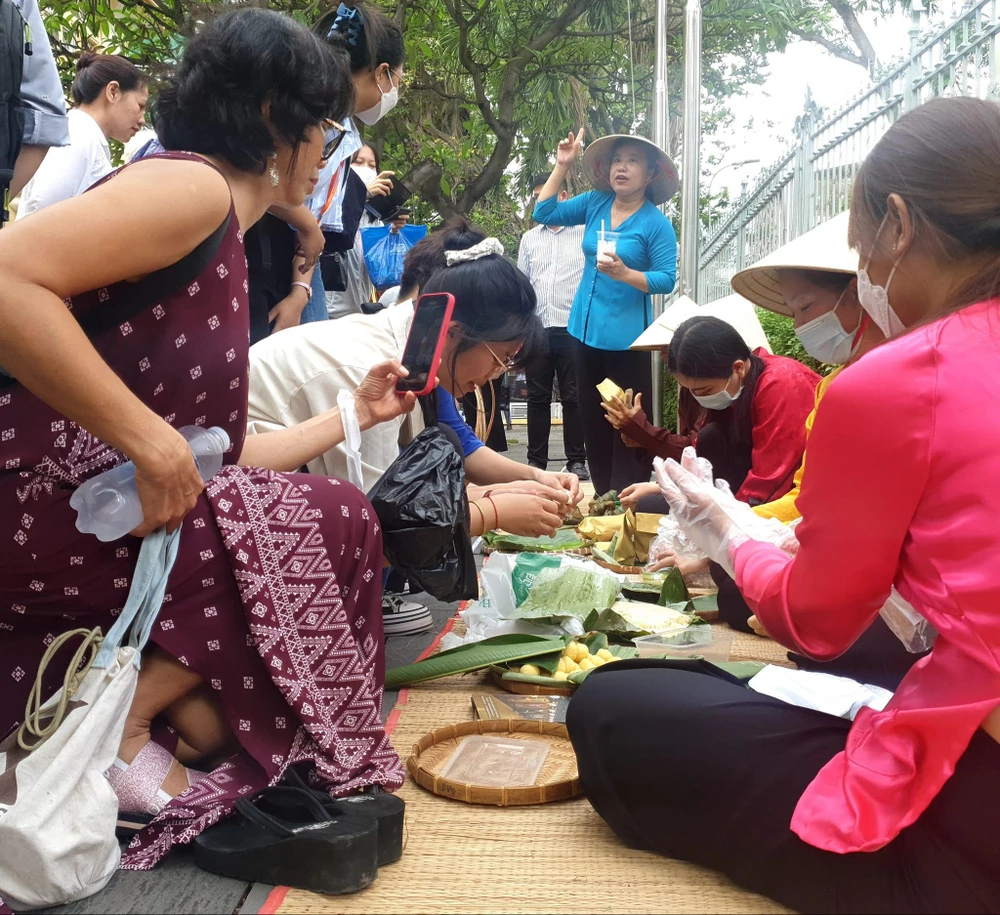 Ngoài chương trình giao lưu giữa các câu lạc bộ nghệ thuật, du khách và khán giả còn được tham gia trải nghiệm các hoạt động làm bánh, đan đồ chơi lá dừa, xem nặn tò he hay thưởng thức các món bánh truyền thống của người miền Nam.