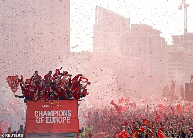 CLB Liverpool trong lễ diễu hành ăn mừng chức vô địch Champions League năm ngoái. ẢNH: REUTERS