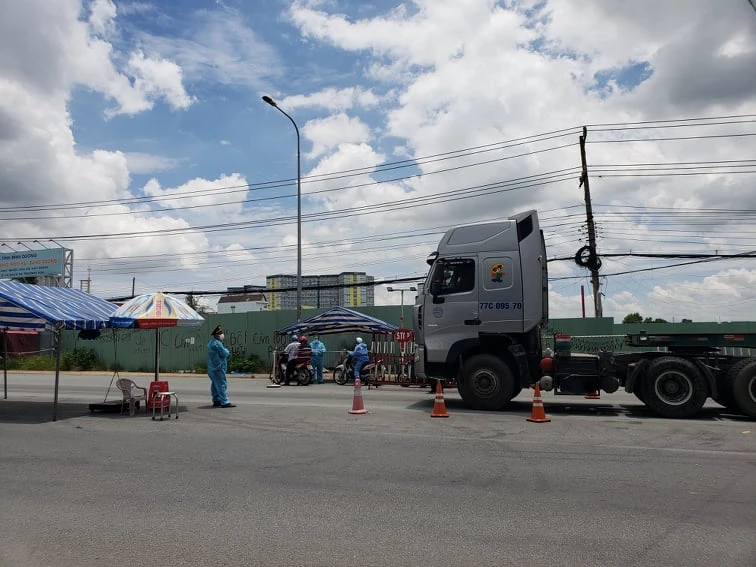 Chốt kiểm soát tại quốc lộ 1K giáp ranh với địa bàn tỉnh Bình Dương. Ảnh: TS