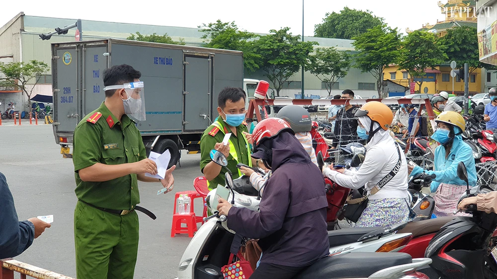 Đối với người dân đi vào địa bàn quận Gò Vấp phải xuất trình giấy tờ hợp lệ như giấy tờ xác nhận làm việc tại công ty, còn phải khai báo y tế và kiểm tra thân nhiệt.