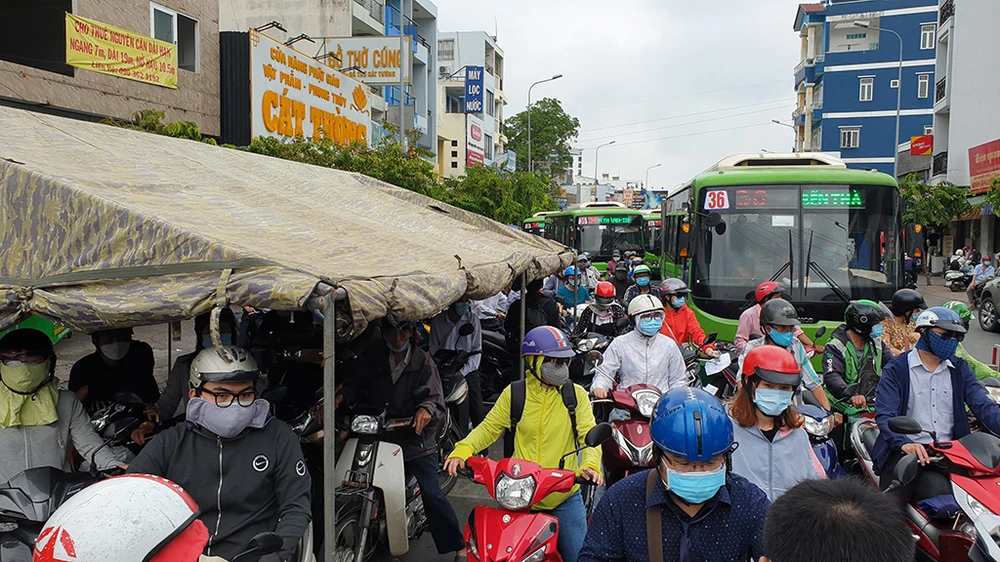 Thực tế ghi nhận, lượng phương tiện ra khỏi khu vực quận Gò Vấp cao hơn hẳn so với lượng phương tiện đi vào. Ảnh NT