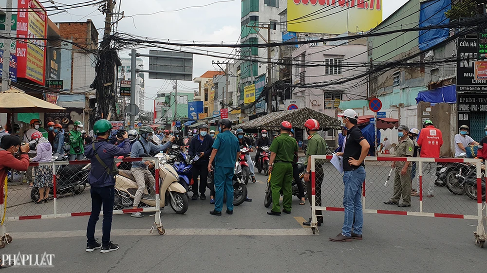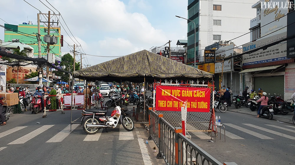 Tại các tuyến đường cửa ngõ ra vào quận Gò Vấp có 10 chốt trạm kiểm soát giãn cách, thực hiện việc kiểm soát y tế để đảm bảo thực hiện giản cách xã hội đúng 15 ngày theo chỉ đạo của UBND TP.HCM. Ảnh NT