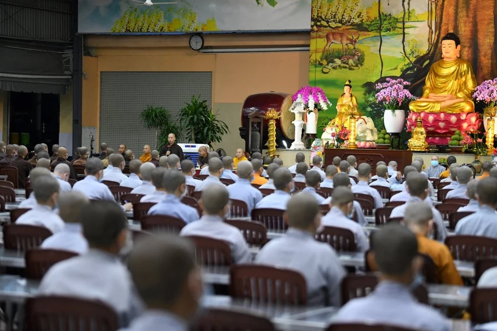 500 tăng ni sinh tham dự buổi sinh hoạt, phổ biến nội quy, các thông báo Phật sự mới của Học viện Phật giáo Việt Nam TP.HCM - cơ sở Lê Minh Xuân (huyện Bình Chánh). Ảnh: Phatgiao.org.vn