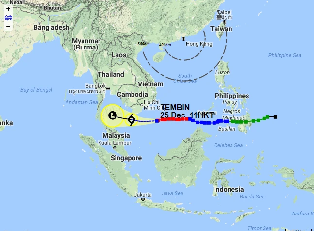 Cụ thể, theo Đài quan sát khí tượng thủy văn Hong Kong, tính đến 12 giờ ngày 26-12 cơn bão Tembin vẫn được xếp loại “bão nhiệt đới nghiêm trọng”. Sức gió tại tâm bão vào tầm 110 km/giờ.
