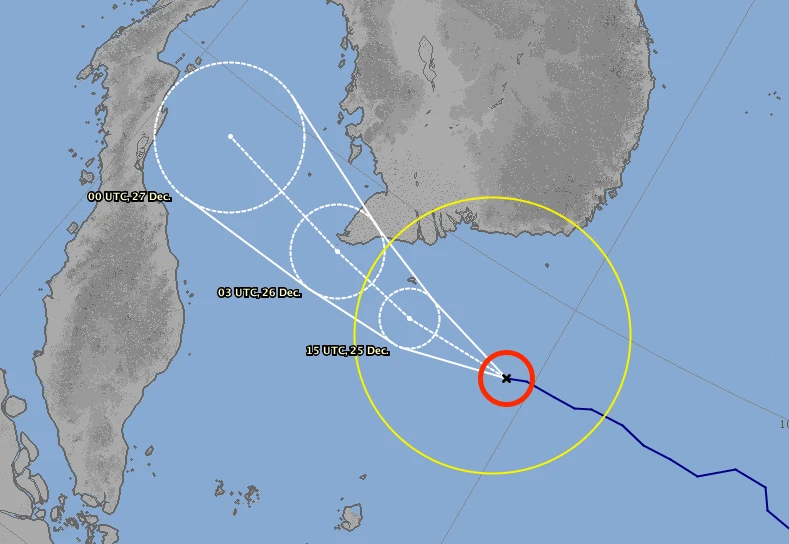 Tuy nhiên trong vòng 24 giờ tới, bão sẽ suy yếu xuống cấp độ áp thấp nhiệt đới với sức gió tối đa gần tâm bão vào khoảng 55 km/giờ. Đến ngày 27-12, bão sẽ tiến sâu vào vùng biển vịnh Thái Lan và suy yếu thành vùng áp thấp nhiệt đới với sức gió tối đa gần tâm bão vào khoảng 40 km/giờ.