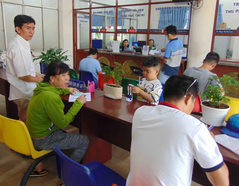 Người dân đến UBND phường Bình Hưng Hòa A liên hệ giải quyết các thủ tục hành chính khá đông. Ảnh: TRẦN NGỌC
