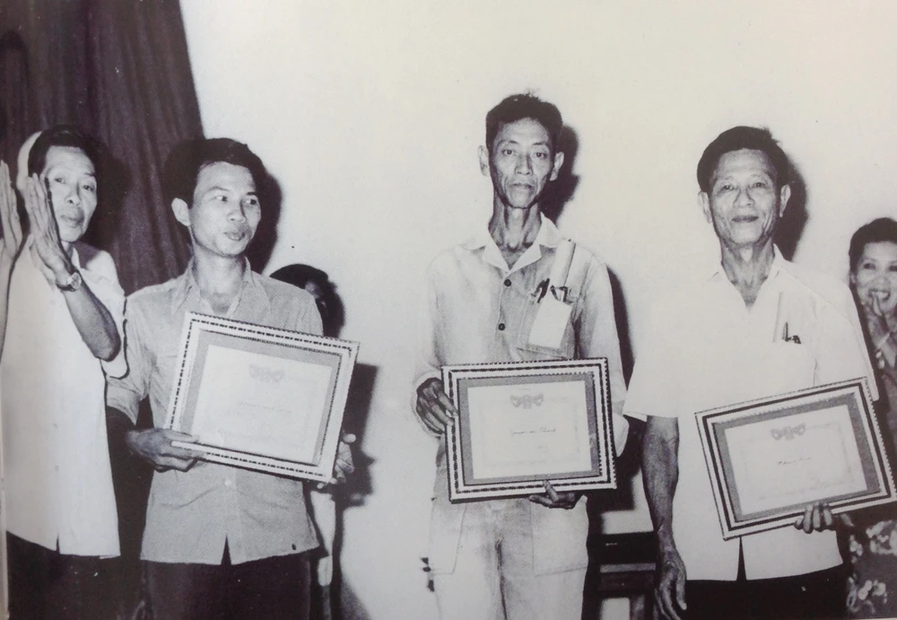 Anh hùng Lao động Phạm Hoài (bìa phải) và những công nhân tiêu biểu.