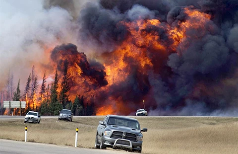 Do cháy rừng đe dọa (ảnh), nhiều doanh nghiệp phải ngừng khai thác các mỏ cát dầu. Hiện thời lửa đã lan đến gần khu mỏ, tuy nhiên chưa có tài sản nào của Suncor bị thiệt hại.