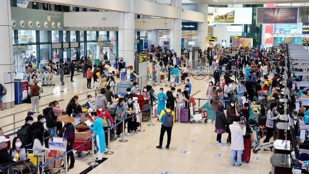 Đại diện sân bay Nội Bài cho biết tính đến ngày 7-2, lượng hàng khách đến sân bay này trong dịp Tết Nguyên đán 2022 đạt 63,5 ngàn lượt người mỗi ngày, và chủ yếu là khách nội địa với hơn 62 ngàn lượt người.