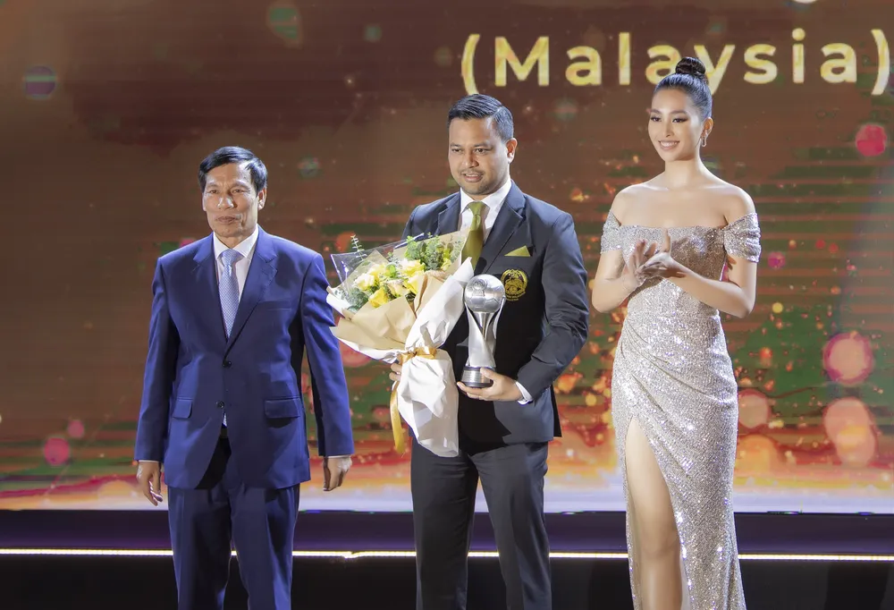 Những cầu thủ hay nhất Đông Nam Á được Đỗ Mỹ Linh trao giải.