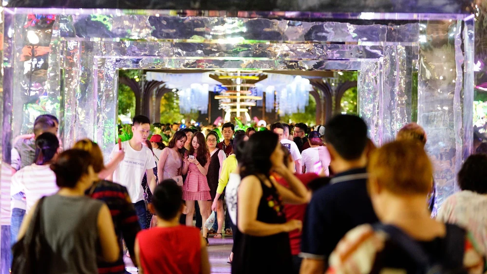 Tại Khu du lịch Suối Tiên (quận 9), lượng khách đến đây vui chơi giải trí đông đúc không kém… Nhiều hoạt động nghệ thuật đặc sắc và hơn 150 công trình vui chơi đa dạng, hấp dẫn là điểm nhấn thu hút khách đến với điểm du lịch này.