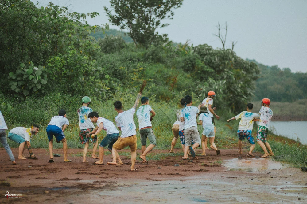 Nhóm bạn trẻ khác lại không "ngại" bày ra các trò chơi "hành xác"...