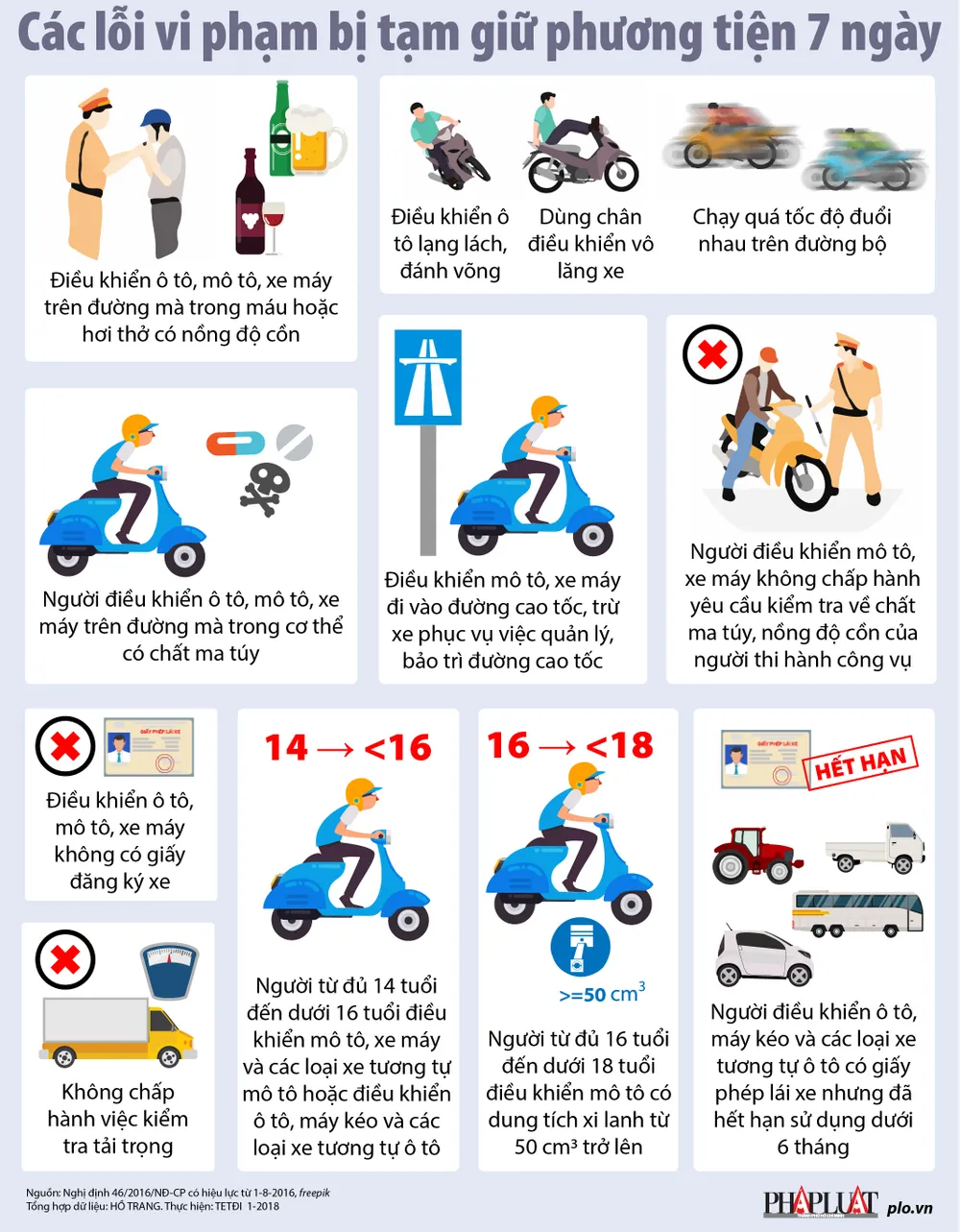 Các lỗi vi phạm bị tạm giữ phương tiện 7 ngày