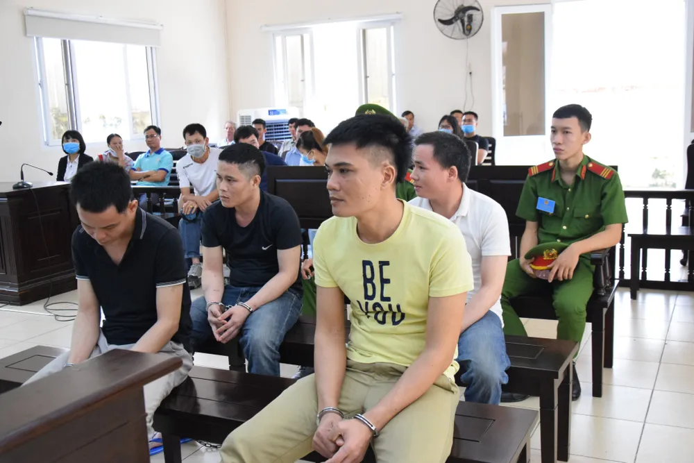 Bốn bị cáo tại tòa, Định (áo vàng). Ảnh: YC