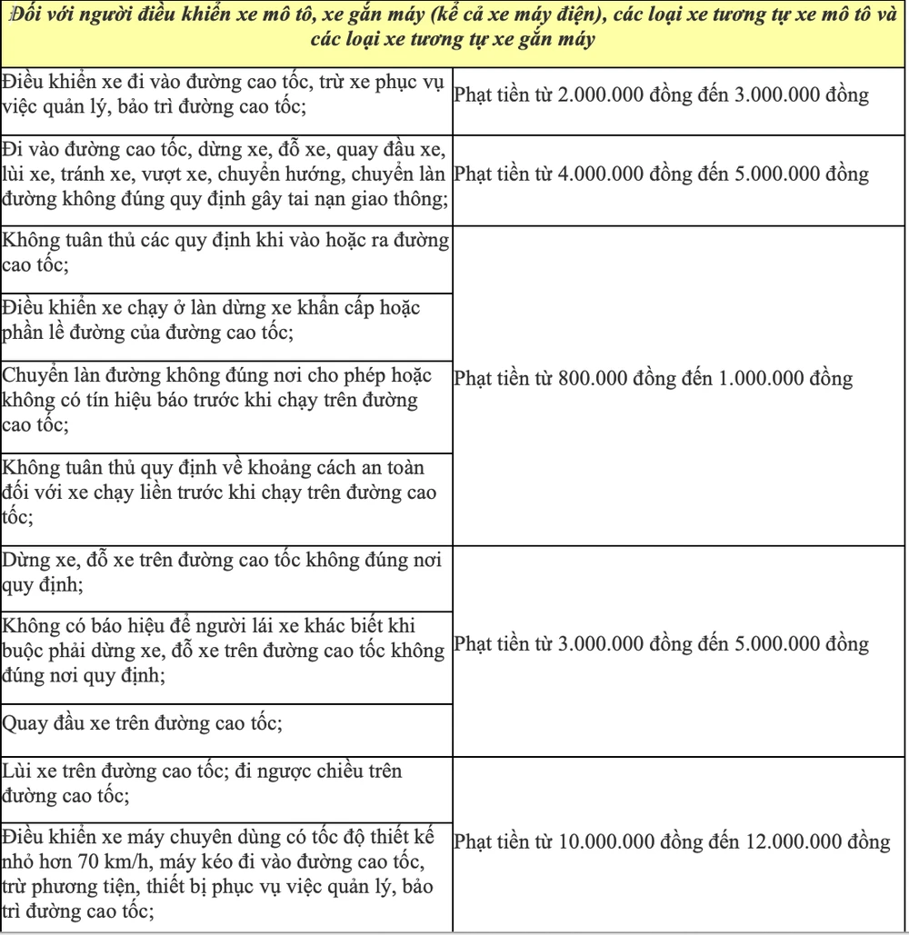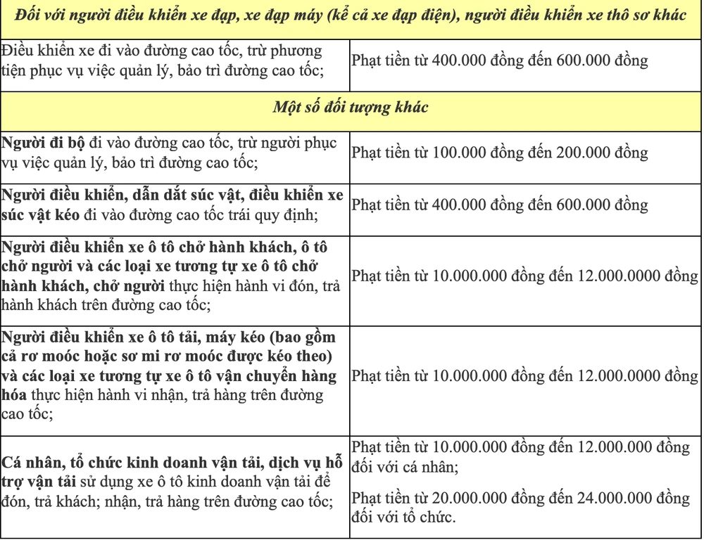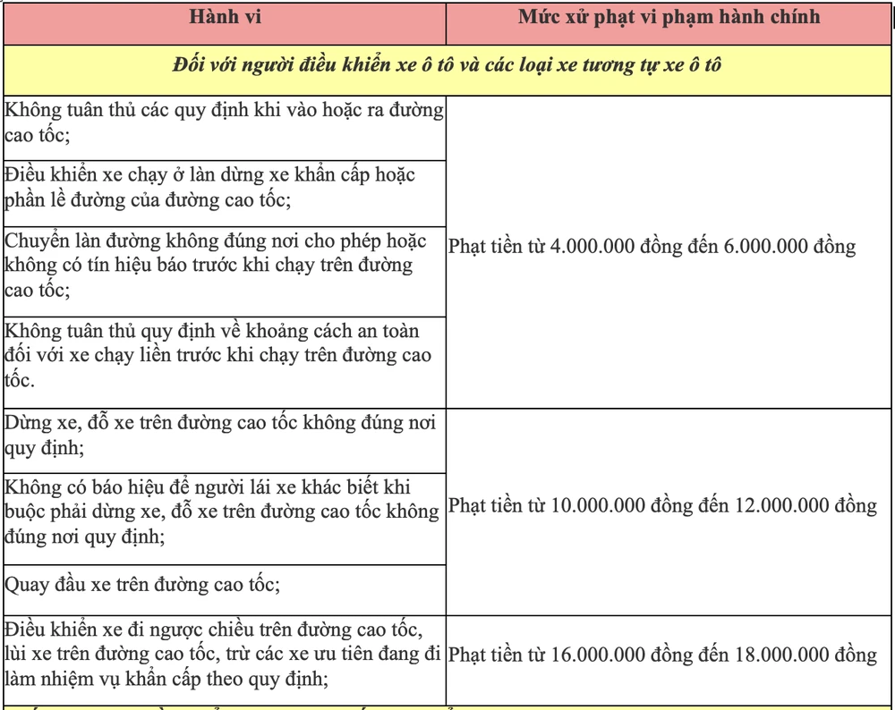 Hiện nay, hầu hết các cao tốc để có gắn các thiết bị xử lý vi phạm giao thông thông qua hình ảnh (hay còn gọi là phạt nguội). Do đó, các tài xế đi qua các đường cao tốc cần nắm được mức vi phạm giao thông trên các cung đường này.