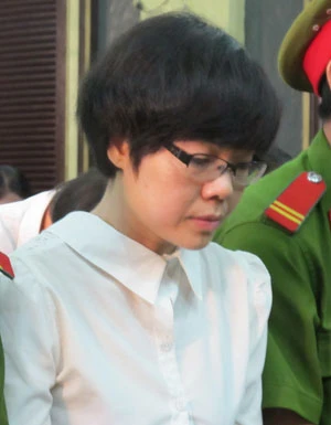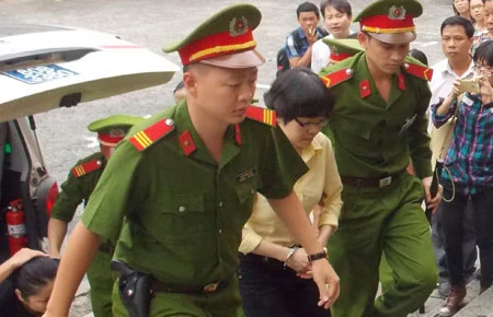 Huỳnh Thị Huyền Như đang được dẫn giải vào phòng xử. Ảnh: HY