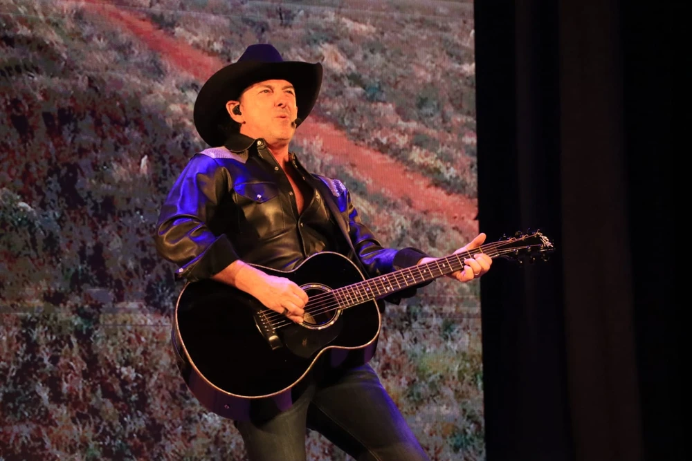 Ca sĩ nhạc đồng quê Lee Kernaghan khiến cả khán phòng nóng lên bằng những ca khúc sôi động và ngón đàn guitar điêu luyện của mình. Ảnh: HÀ NGUYỄN |