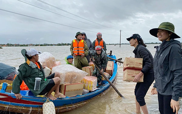 Lê Thúy và Lệ Hằng hỗ trợ miền Trung.
