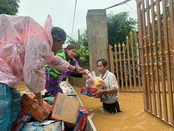 Ngày 20-10, đoàn tiếp tục đến Đông Hà (Quảng Trị) phát thuốc, lương thực và tiền mặt cho các gia đình bị ngập sâu trong lũ.