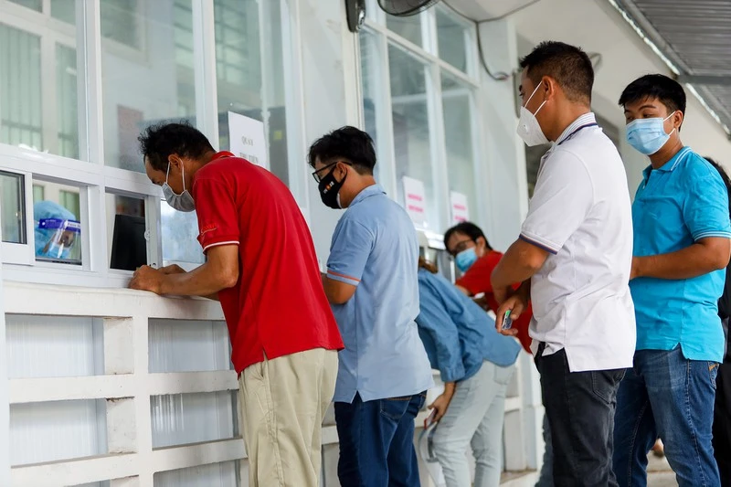 Người dân đăng ký test nhanh COVID-19 tại Bệnh viện Quân Y 175. Ảnh: NGUYỆT NHI