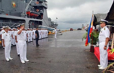 Ngày 17-8, hải quân Philippines làm lễ xuất hành trước khi tàu chiến BRP Ramon Alcaraz lên đường tập trận ở Úc. Ảnh: HẢI QUÂN PHILIPPINES
