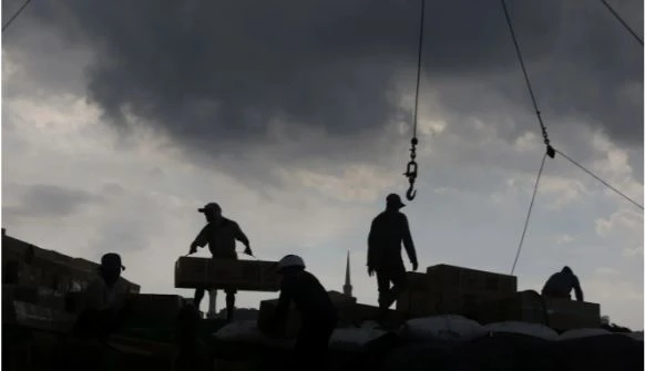 Những công nhân vận chuyển lô hàng thực phẩm lên tàu ở một cảng của thủ đô Jakarta, Indonesia. Ảnh: EPA