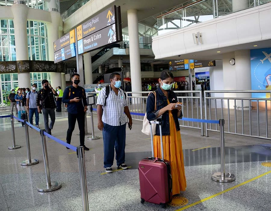 Du khách xếp hàng tại một sân bay quốc tế trên đảo Bali của Indonesia