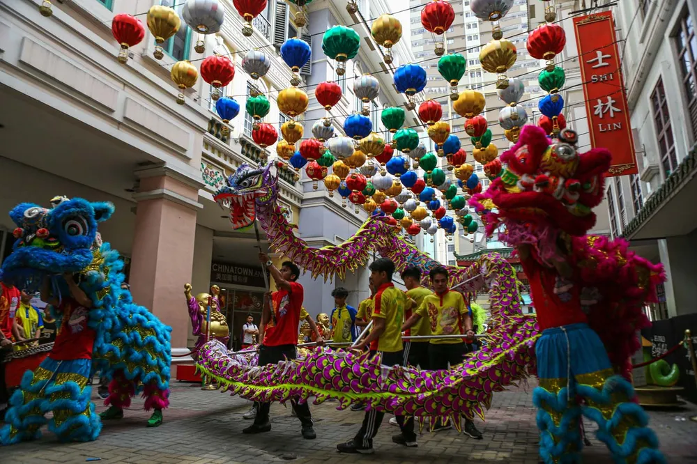 Hoạt động múa lân-sư-rồng ở Tân Cương (Trung Quốc) hôm 22-1. Ảnh: CNN