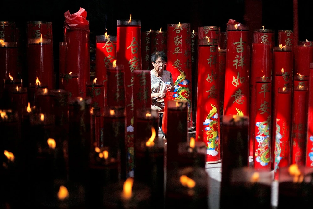 Một cụ bà đi thăm đền Dharma Bhakti - đền Trung Quốc cổ nhất Jakarta. Ảnh: THE JAKARTA POST