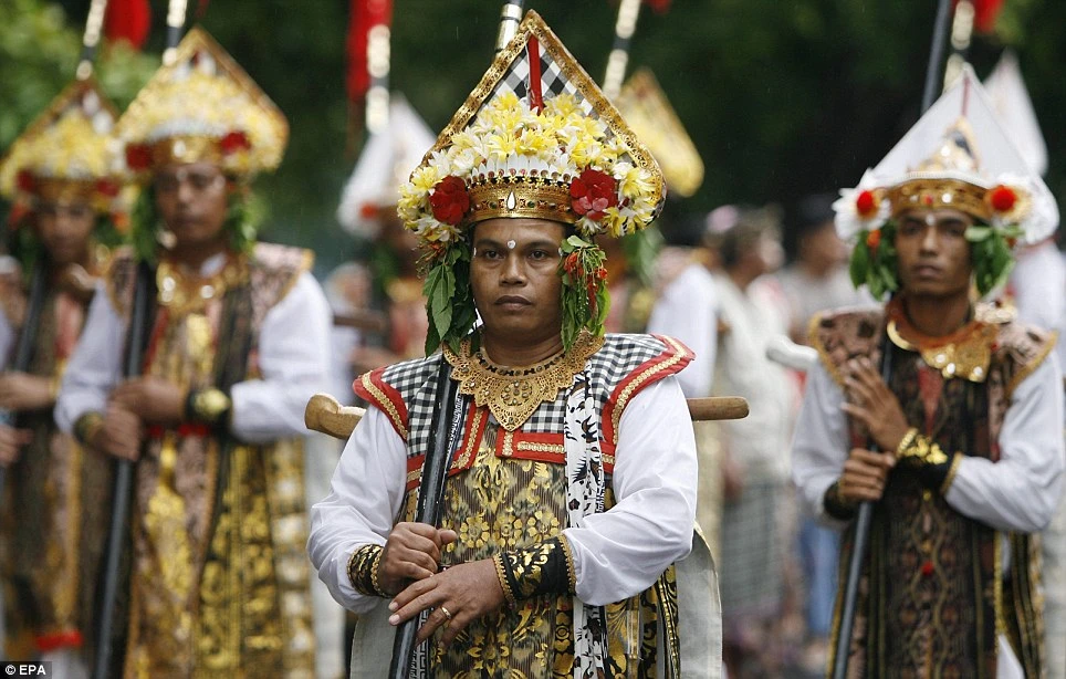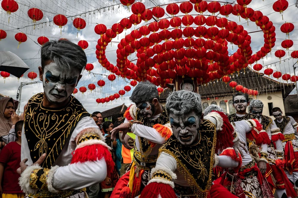 Các vũ công trong các bộ trang phục truyền thống tham gia diễu hành dịp lễ hội Grebeg Sudiro ở TP Solo. Đây là sự kiện hàng năm nhằm chuẩn bị cho năm mới. Ảnh: CNN