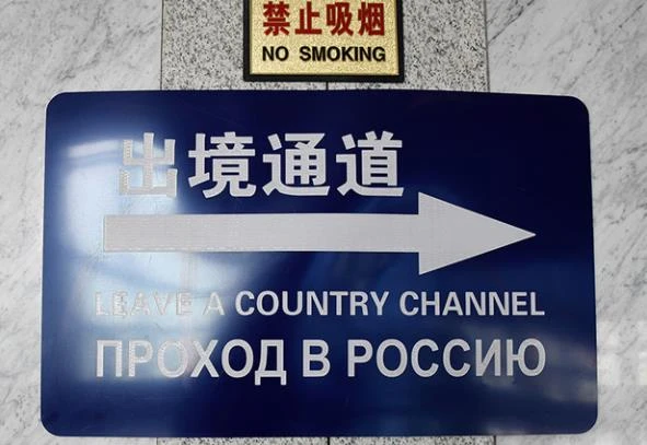 Một biển báo tại biên giới Nga - Trung. Ảnh: RT