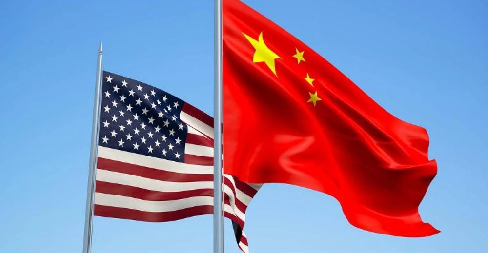 Quốc kỳ Mỹ (trái) và quốc kỳ Trung Quốc (phải). Ảnh: REUTERS