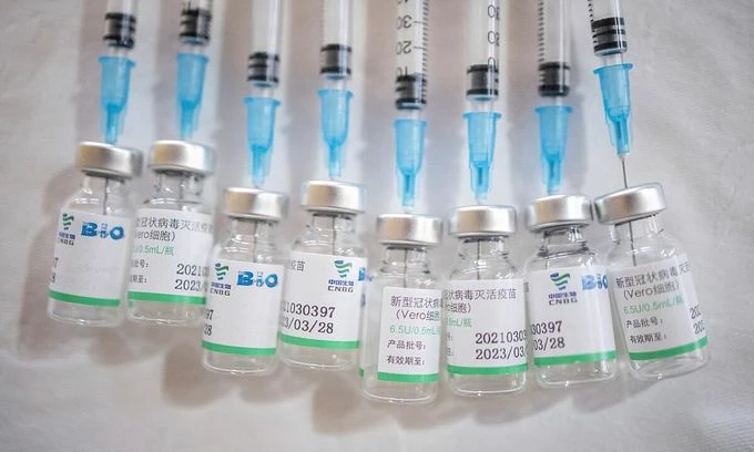 Các lọ vaccine của hãng dược Sinopharm (Trung Quốc). Ảnh: REUTERS