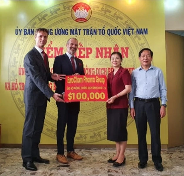 Các thành viên EuroCham Pharma Group đã ủng hộ số tiền tương đương 100.000 USD (khoảng 2,3 tỉ đồng) cho Việt Nam. Đại diện Uỷ ban Trung ương Mặt trận Tổ quốc Việt Nam (UBTƯ MTTQ) đã tiếp nhận số tiền này vào công tác phòng, chống dịch COVID-19.