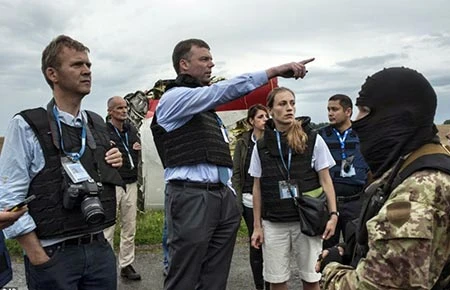 Hãng tin RIA Novosti (Nga) đưa tin ngày 19-7, 30 quan sát viên thuộc Tổ chức An ninh và Hợp tác châu Âu (OSCE) đã vào đến hiện trường máy bay rơi. Nhiệm vụ của họ là bảo đảm quốc tế có mặt giám sát tình hình hiện trường trong khi chờ đợi các chuyên gia hàng không đến. Họ cũng làm nhiệm vụ kiểm tra hiện trường an toàn chưa, đánh giá tình trạng các thi thể, mảnh vỡ, hộp đen.