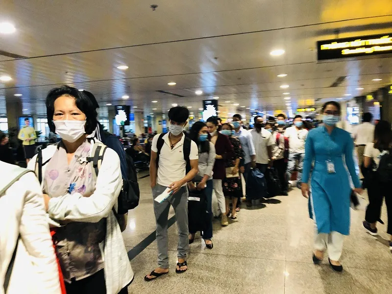 Lãnh đạo ACV yêu cầu nhắc nhở yêu cầu toàn bộ hành khách thực hiện nghiêm việc đeo khẩu trang (kể cả người đưa tiễn) trong phạm vi cảng hàng không, sân bay. Ảnh: PHONG ĐIỀN