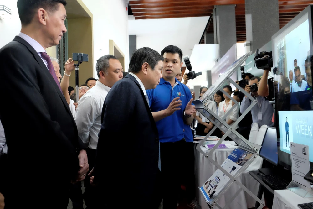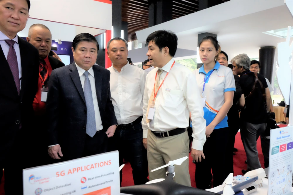Ông Nguyễn Thành Phong, Chủ tịch UBND TP.HCM, cùng các đại biểu tham quan triển lãm tại sự kiện sáng 28-12. Ảnh: Thu Hà