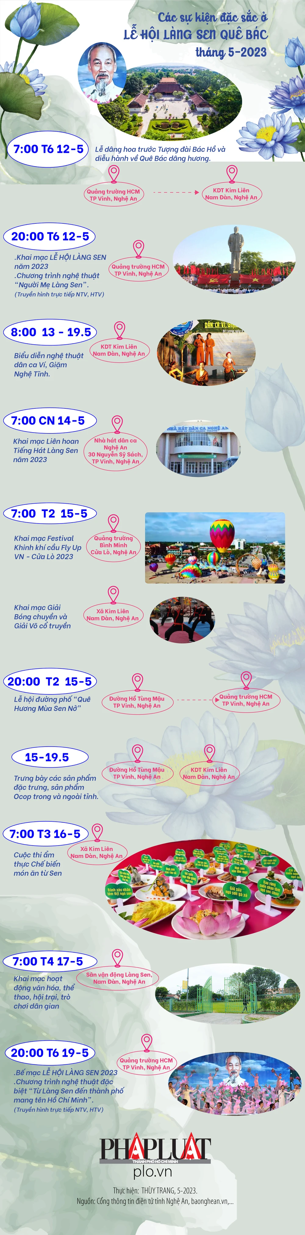 (PLO)- Nhân dịp kỷ niệm 133 năm ngày sinh Chủ tịch Hồ Chí Minh (1890-2023), Lễ hội Làng Sen quê Bác được UBND tỉnh Nghệ An tổ chức có quy mô lớn với nhiều sự kiện đặc sắc diễn ra từ nay đến 19-5.