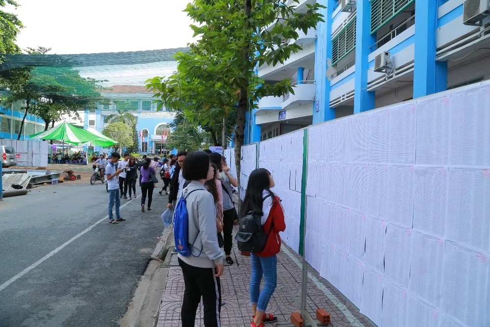 Các thí sinh đến xem thông tin trúng tuyển tại Trường ĐH Công nghiệp thực phẩm.