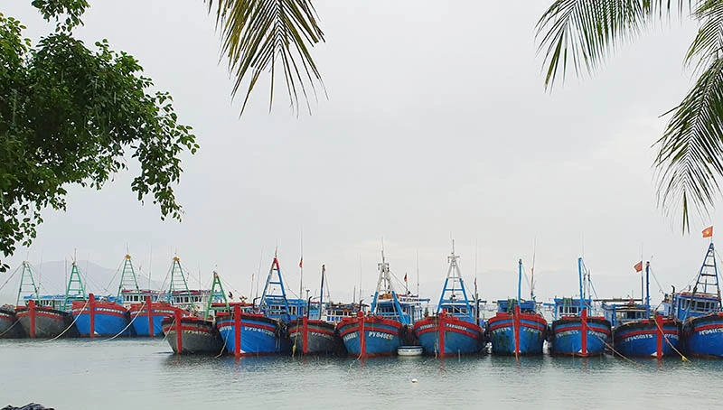 Tàu thuyền neo đậu tránh trú áp thấp nhiệt đới tại thị xã Sông Cầu, tỉnh Phú Yên. Ảnh: TẤN LỘC