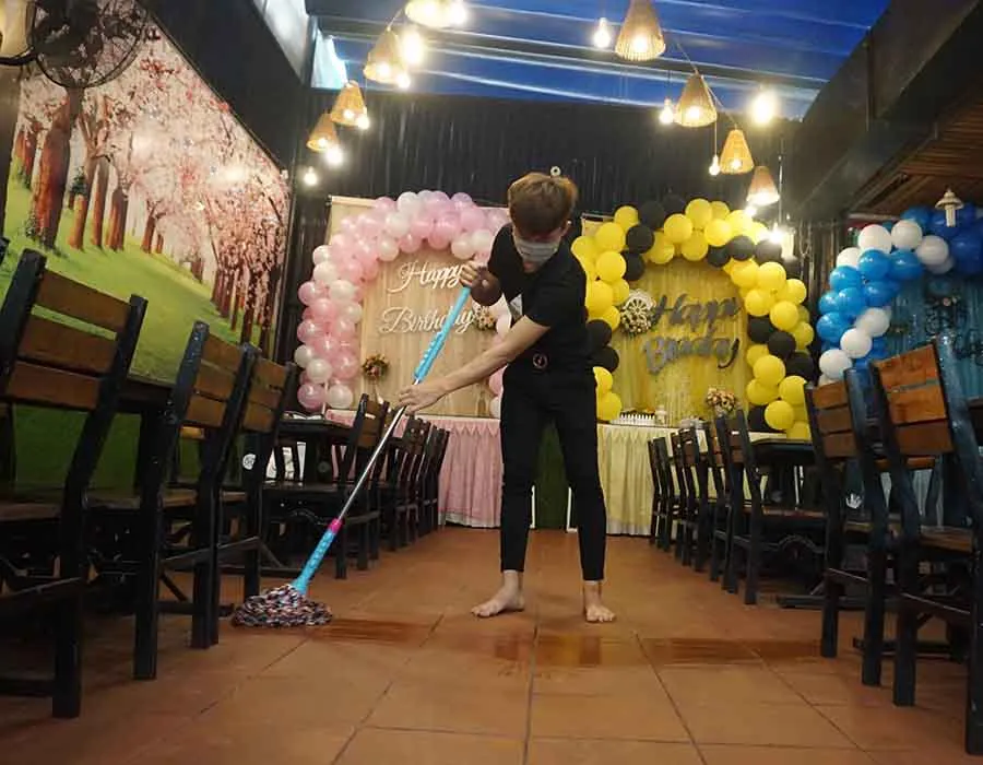 Người dân Đà Nẵng dọn dẹp hàng quán chuẩn bị buôn bán trở lại.
