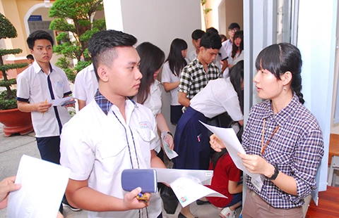 Các thí sinh làm thủ tục vào phòng thi THPT quốc gia năm 2015 tại TP.HCM. Ảnh: HTD