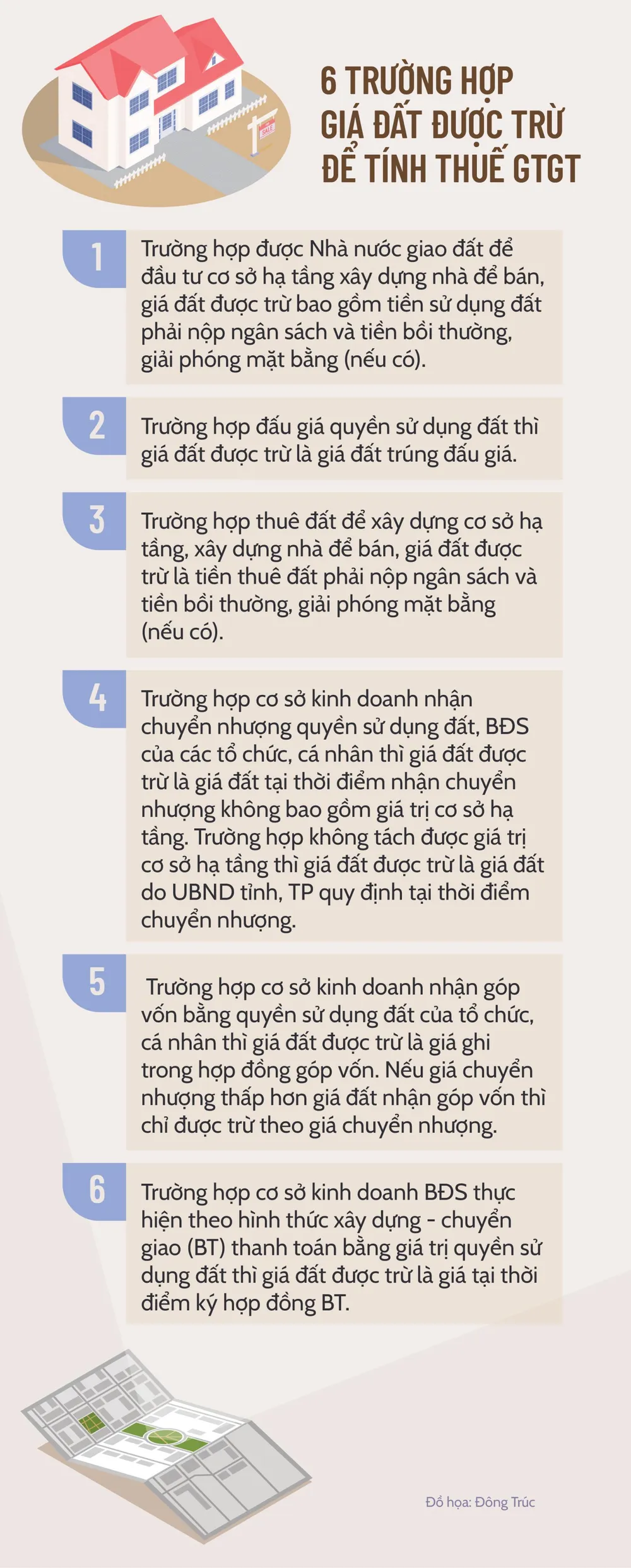 (PLO)- Chính phủ vừa ban hành Nghị định số 49/2022 sửa đổi, bổ sung Nghị định 209/2013 quy định chi tiết và hướng dẫn thi hành một số điều của Luật Thuế giá trị gia tăng, đáng chú ý là định quy định 6 trường hợp giá đất được trừ để tính thuế giá trị gia tăng.