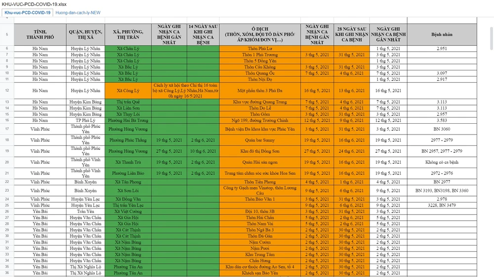 Ngày 31-5, Ban chỉ đạo Phòng chống dịch TP Đà Nẵng cung cấp thông tin về các khu vực, địa điểm COVID-19 người về cần áp dụng các biện pháp phòng chống dịch theo công văn 3244 ngày 27-5 của UBND TP Đà Nẵng.