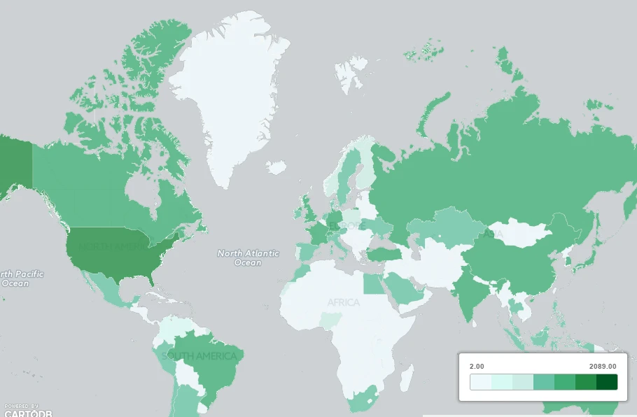 Bản đồ những quốc gia có nhiều tỷ phú trên thế giới (Nguồn: The Guardian)