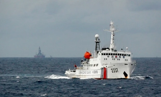 Một tàu tuần duyên của Trung Quốc gần giàn khoan HD-981 trên Biển Đông, cách bờ biển Việt Nam khoảng 210km (Ảnh: Reuters)