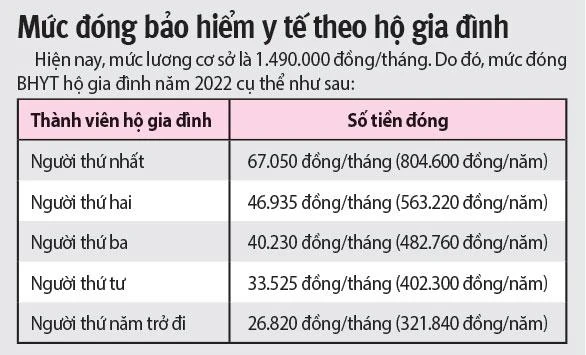 Theo quy định hiện hành thì mức đóng bảo hiểm y tế (BHYT) hộ gia đình sẽ được giảm trừ dần từ người thứ hai trở đi.